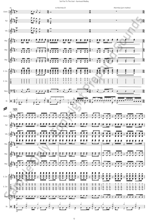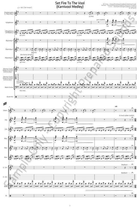 This medley arrangement offers your advancing mallet students a chance to play hard-edged, melodic lines accompanied by a 3-piece rock band. It incorporates 3 of Karnivool’s most popular songs – “All I Know” (Sound Awake – 2009), “Themata” and “C.O.T.E.” (Themata).